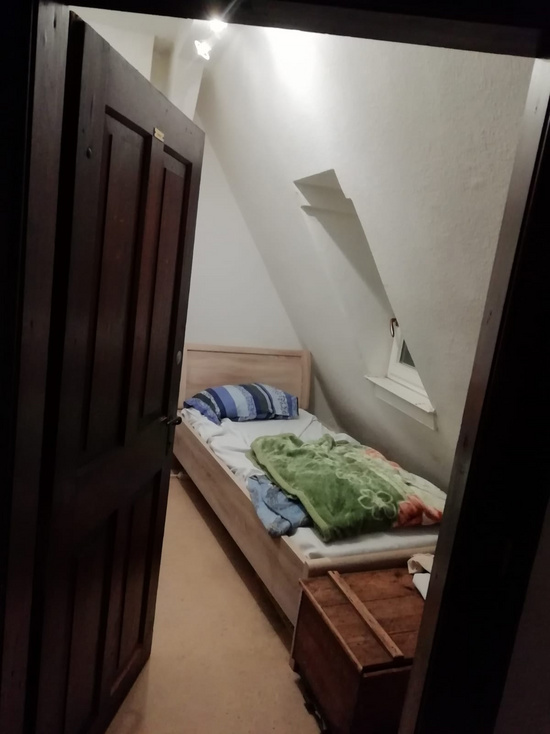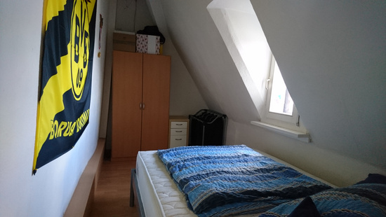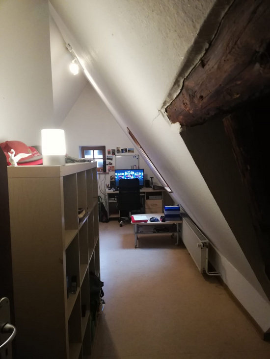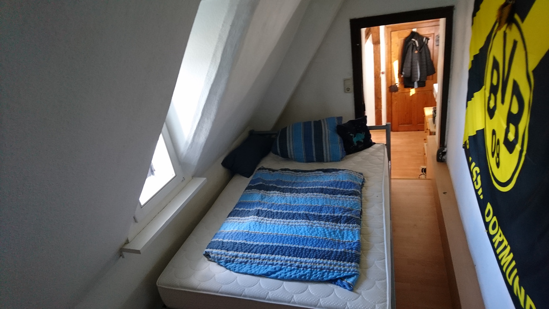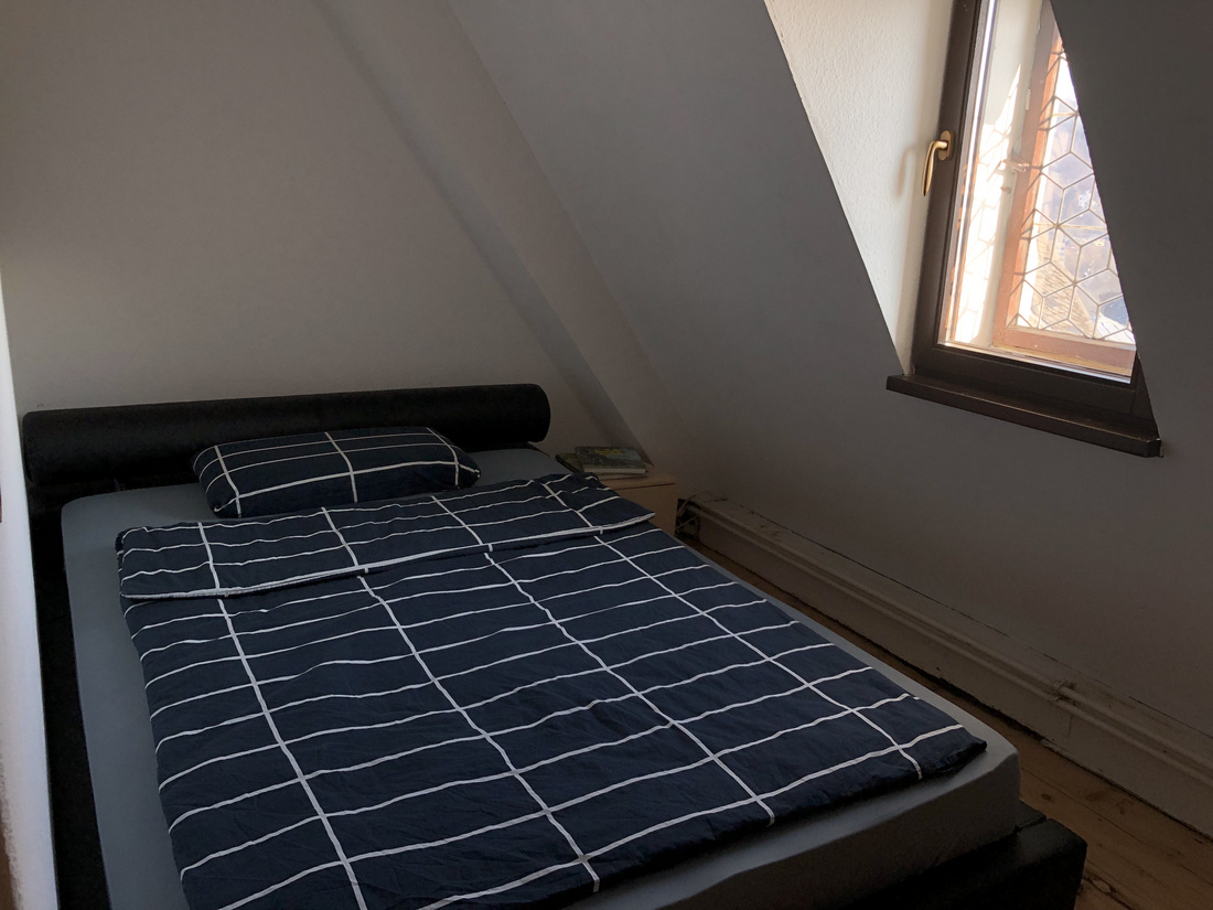 Im 3. Stock unter dem Dach liegt dieses modern ausgebaute Zimmer. Zwei Dachfenster lassen nach Süden und Westen blicken. Hier befindet sich nicht nur der höchste Platz des Hauses sondern auch der ruhigste. Und der weiteste Ausblick über Stadt und Land. Das Zimmer ist knapp 15 qm groß, modern möbliert und mit Telefon- und DSL-Anschluss ausgestattet. Das 2 m entfernte verwinkelte Fachwerk-Badezimmer hat sicher Seltenheitswert.